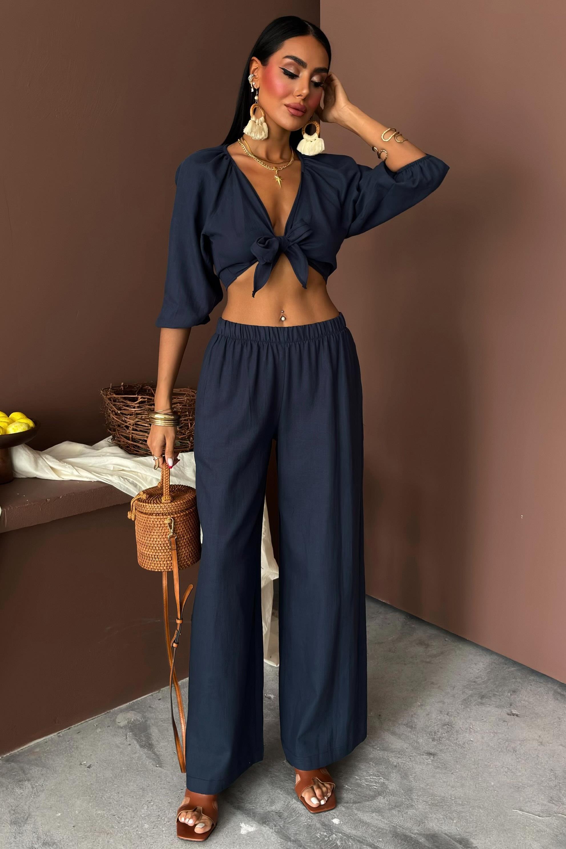 Balon Kollu ve Bağlama Detaylı Keten Takım 10182 (S5Y10182)