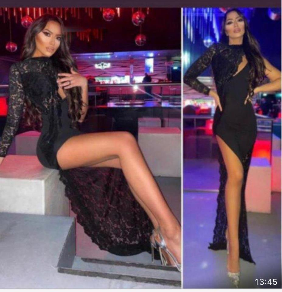 Dantel Güpür Yırtmaçlı Dekolteli Detaylı Elbise