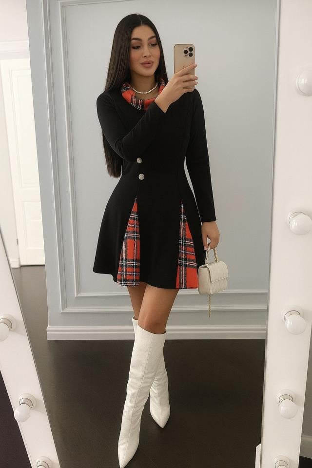 Düğme Ve Garni Detaylı Scuba Dalgıç Kumaş Rahat Elbise
