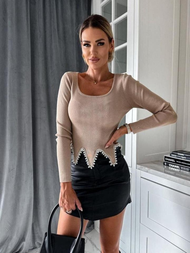 İthal Ottoman Kaşkorse Kumaş Fransız Inci Detaylı Bluz (5548)