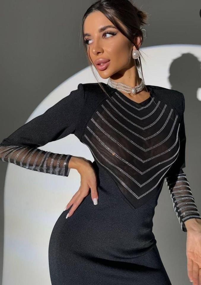 İthal Scuba Dakgıç Kumaş Taş Aksesuralı Tasarım Elbise