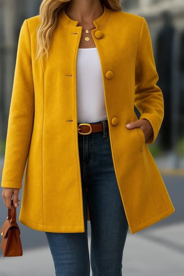 Kadın Uzun Kollu Hakim Yakalı önden Düğmeli Cep Detaylı Astarlıkaşe Kaban