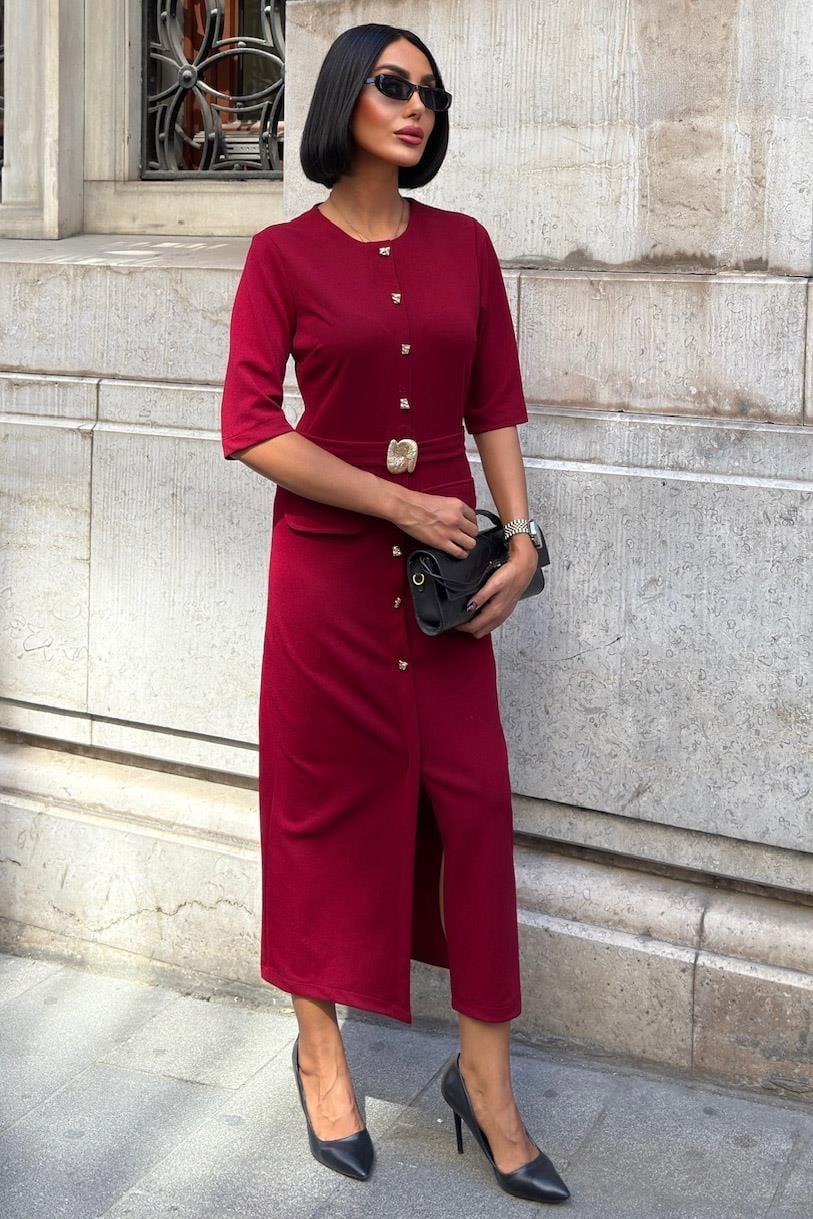 Kemer Detaylı Midi Elbise 2909 R8-C-K3