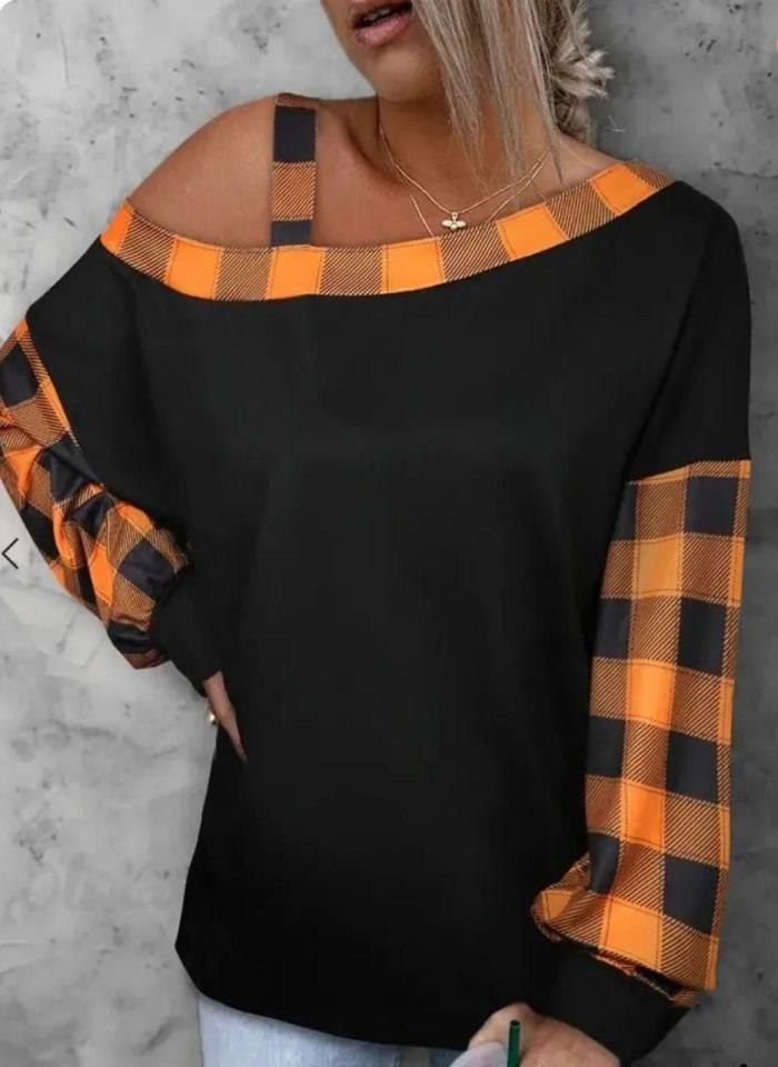 Scuba Dalgıç Kumaş Ekose Desen Tek Askılı Bluz (5847)