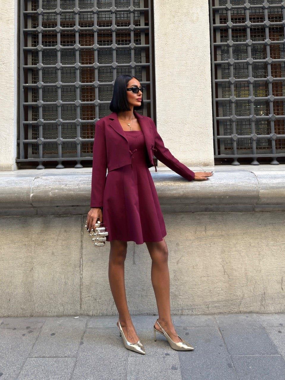 Zr Model Ceket Elbise Premium İkili Takım - Bordo