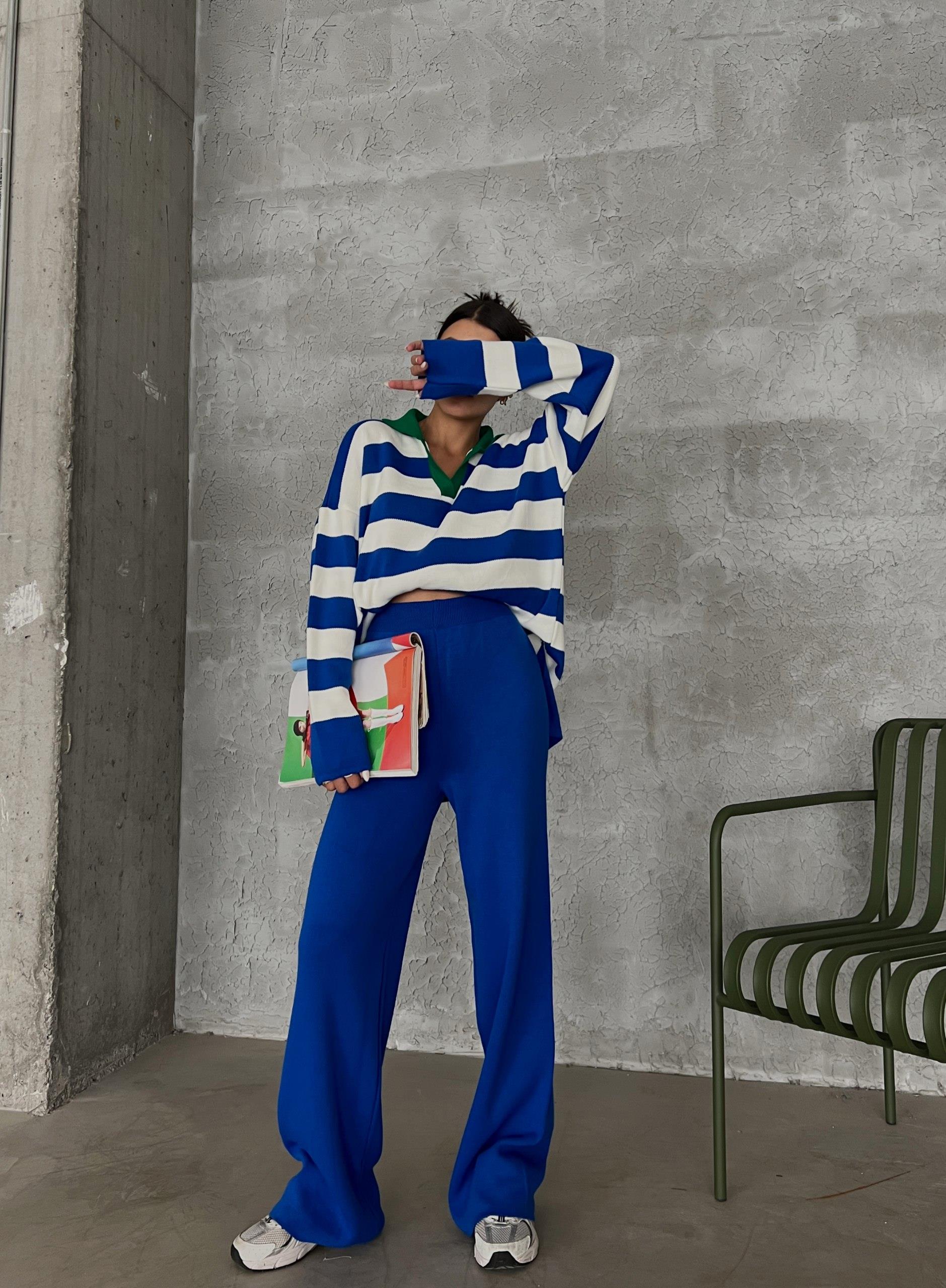 Zr Model Çizgili Premium Triko Takım - Mavi