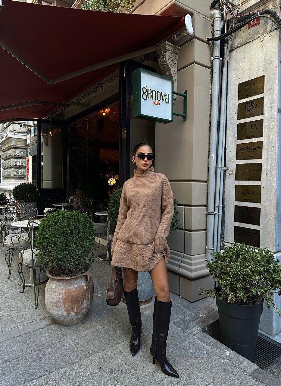 Zr Model Etekli Premium Triko İkili Takım - Bej (S4K9495 - Bej)