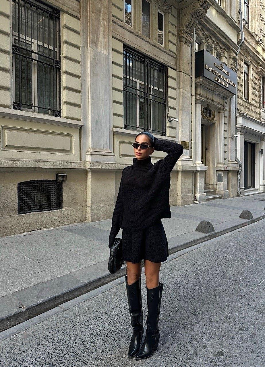 Zr Model Etekli Premium Triko İkili Takım - Siyah