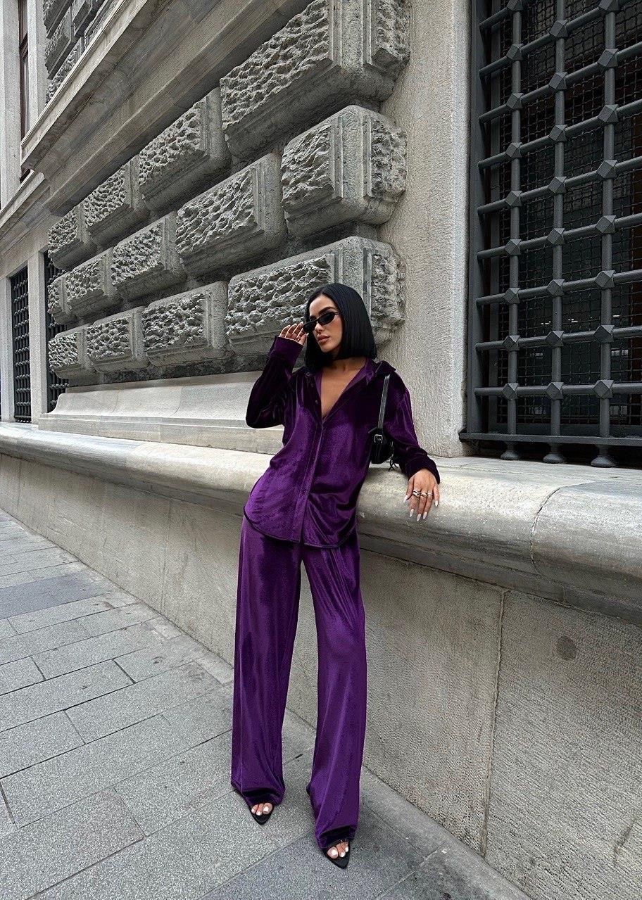 Zr model kadife gömlek pantolon ikili takım - MÜRDÜM