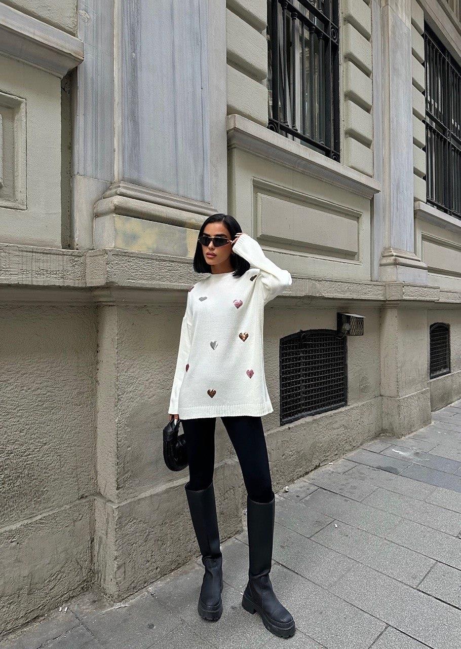 Zr Model Kalp İşlemeli Premium Triko - Beyaz