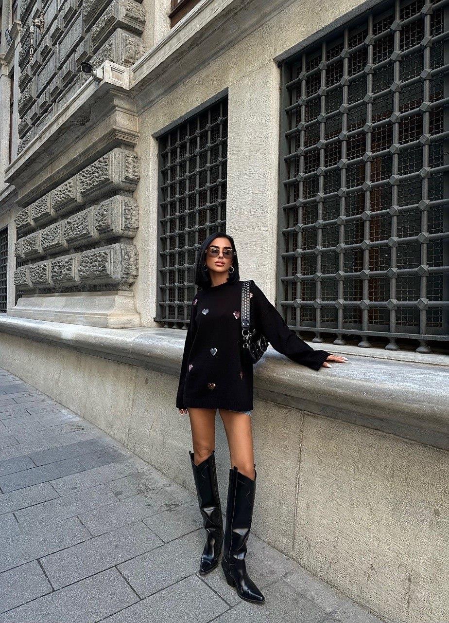 Zr Model Kalp İşlemeli Premium Triko - Siyah (S4K1339 - Siyah)
