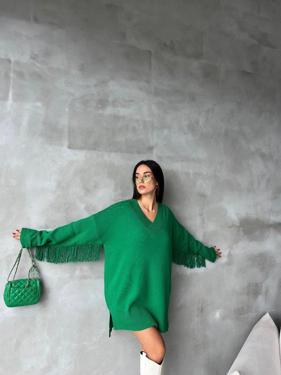 Zr Model Kolları Püsküllü Triko - Yeşil (S3K1228 - Yeşil)
