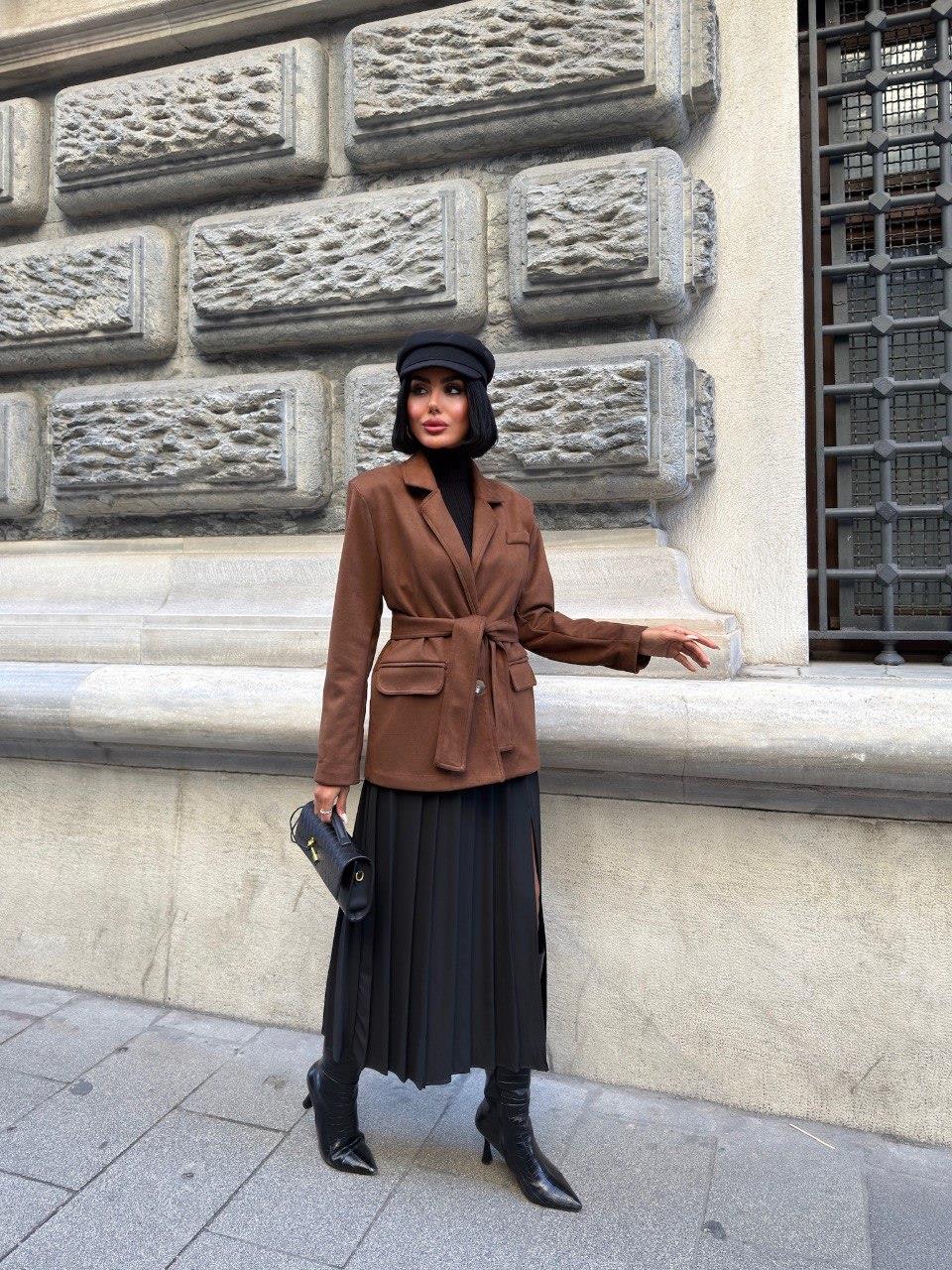 Zr Model Kuşaklı Premium Süet Ceket- Kahve (S4K6131 - Kahve)