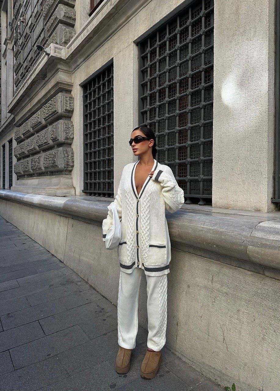 Zr Model Oversize Hırka Pantolon İkili Takım - Ekru