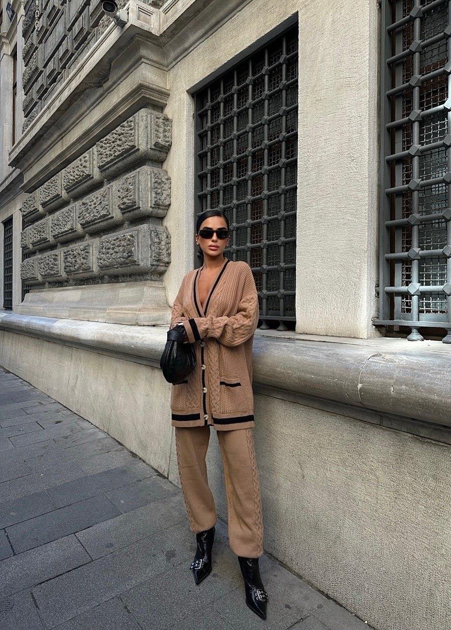 Zr Model Oversize Hırka Pantolon İkili Takım - Vizon
