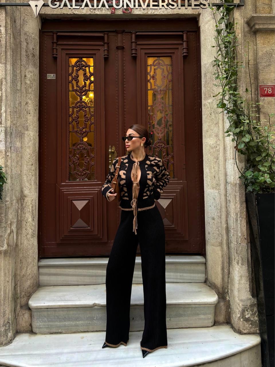 Zr model premium kalite leopar desen triko ikili takım - SİYAH