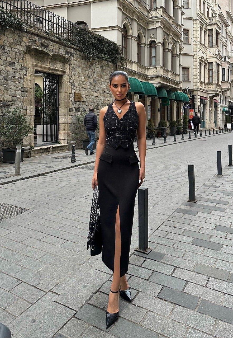 Zr Model Premium Yelekli Elbise - Siyah (S3K2682 - Siyah)