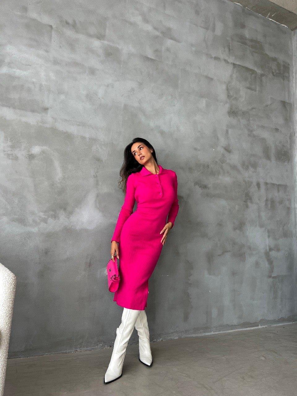 Zr Model Yaka Detay Triko Elbise - Fuşya (S3K2543 - Fuşya)