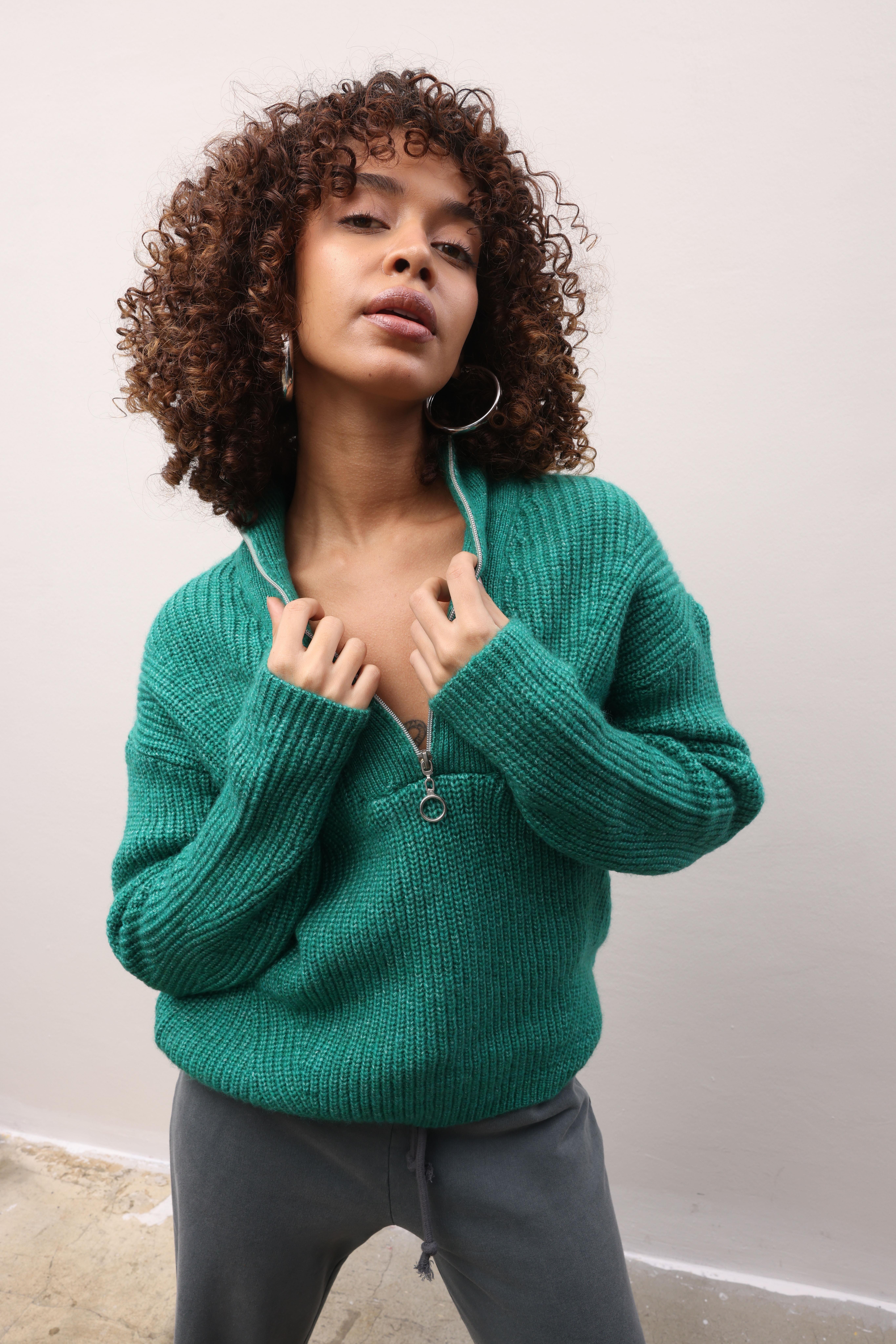 Zr model yaka fermuar ipek triko kazak - YEŞİL