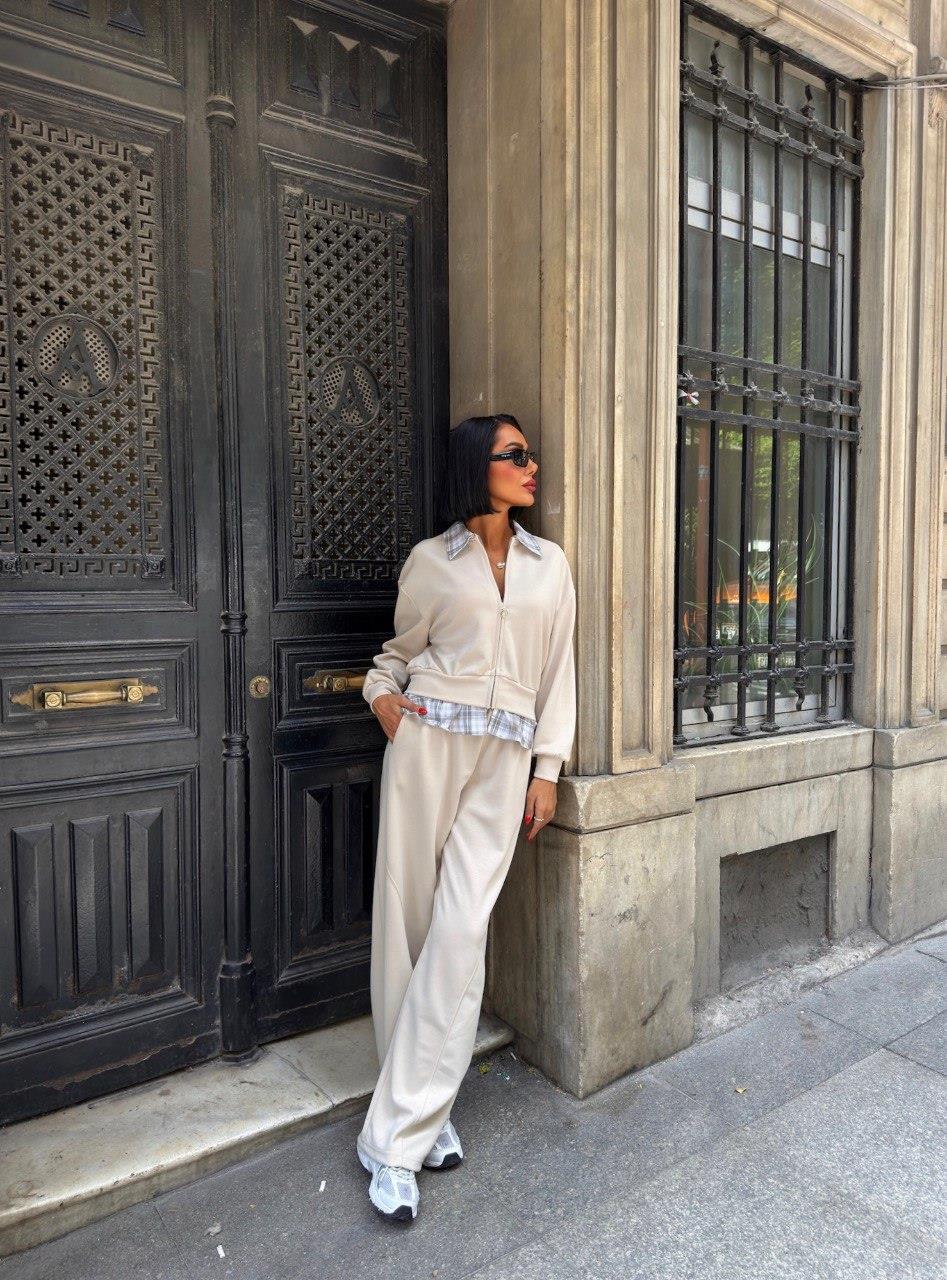 Zr Model Yaka ve Etek Ucu Garnili Premium Takım - Bej (S4K10252 - Bej)