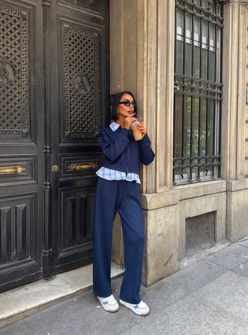 Zr Model Yaka ve Etek Ucu Garnili Premium Takım - Lacivert (S4K10252 - Lacivert)