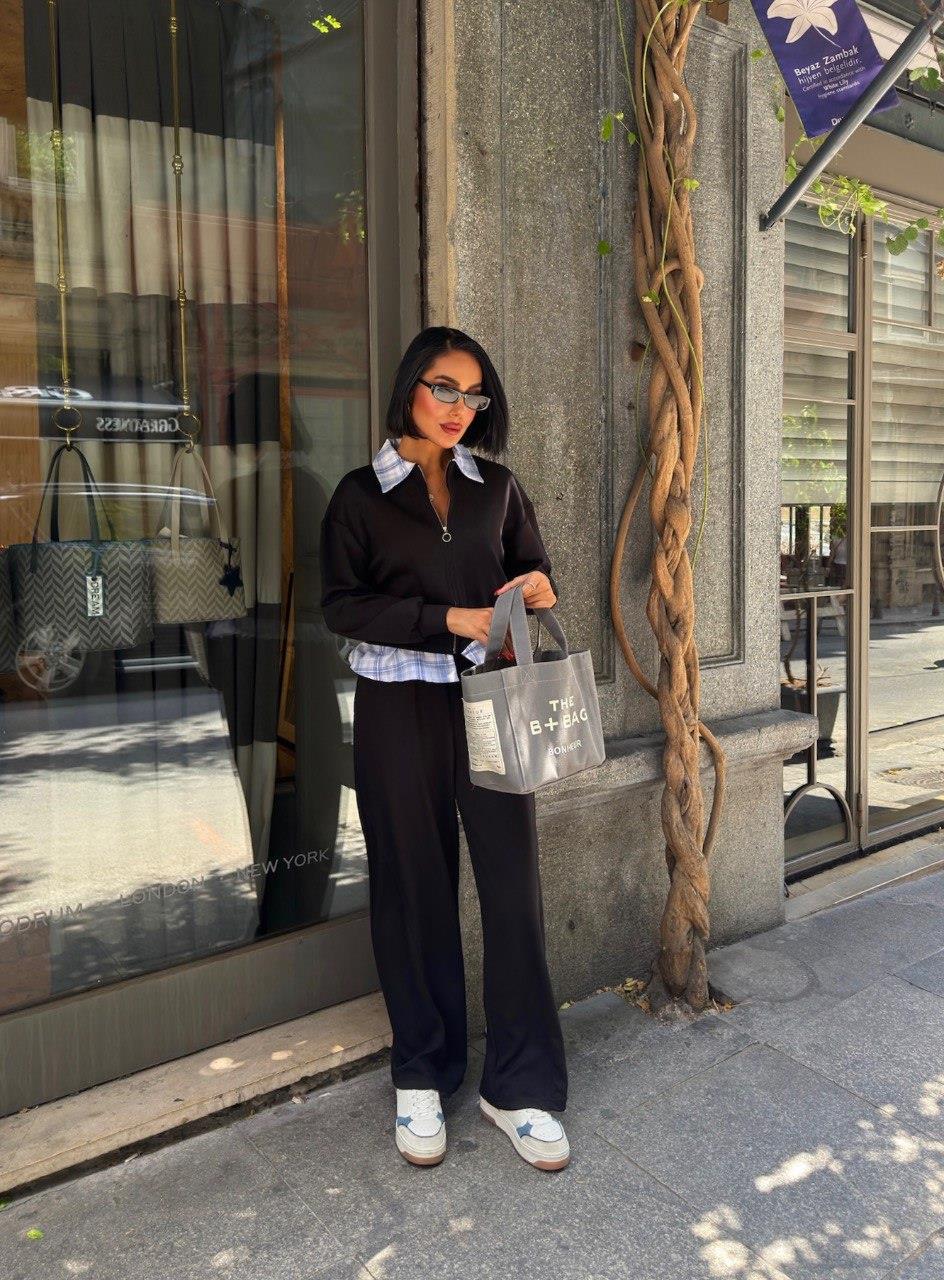 Zr Model Yaka ve Etek Ucu Garnili Premium Takım - Siyah (S4K10252 - Siyah)