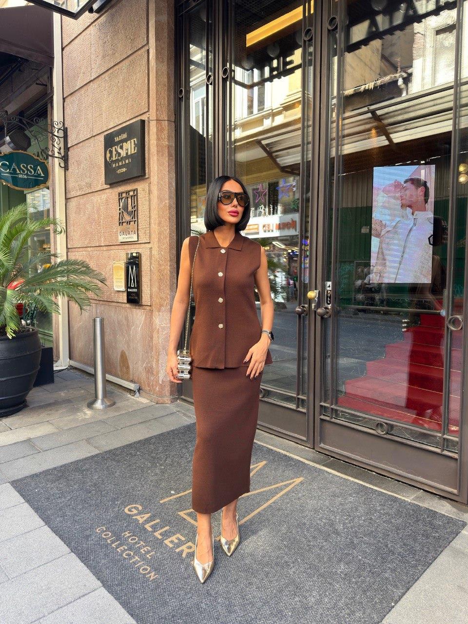 Zr Model Yelek Etek Premium Triko Takım - Kahve