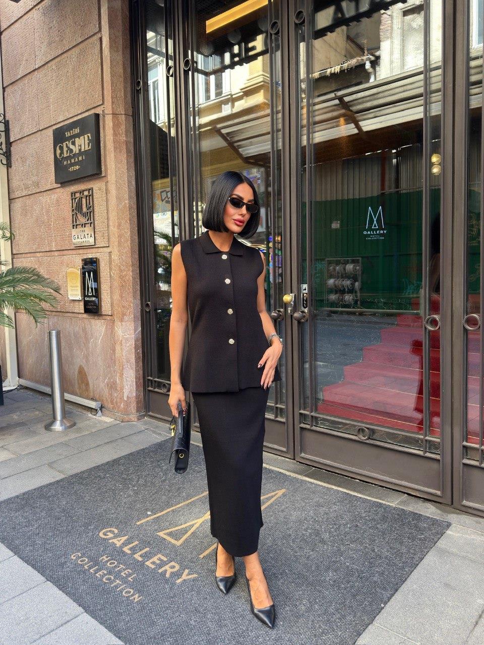 Zr Model Yelek Etek Premium Triko Takım - Siyah