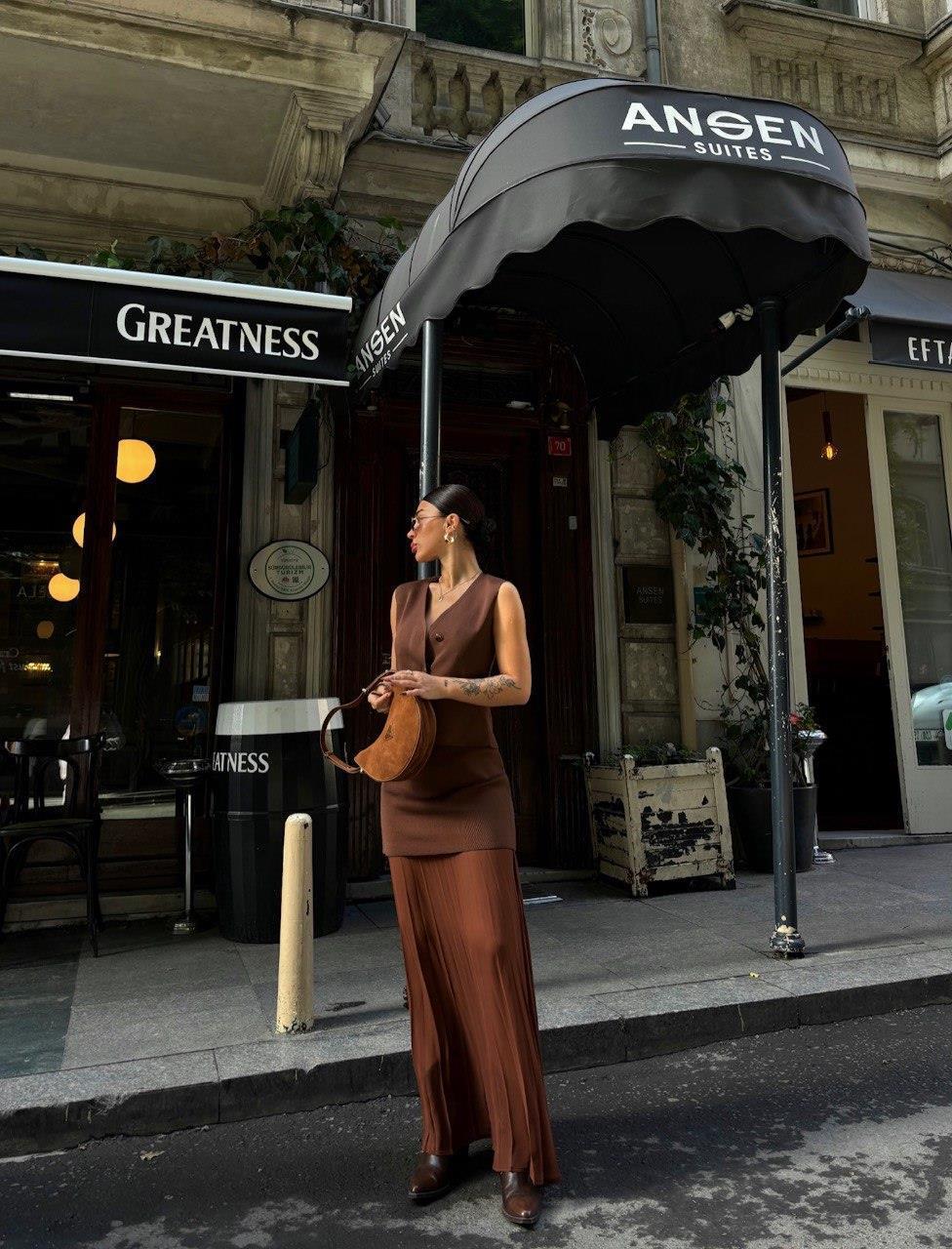 Zr Model Yelek Etek Triko İkili Takım - Kahve (S4K10001 - Kahve)