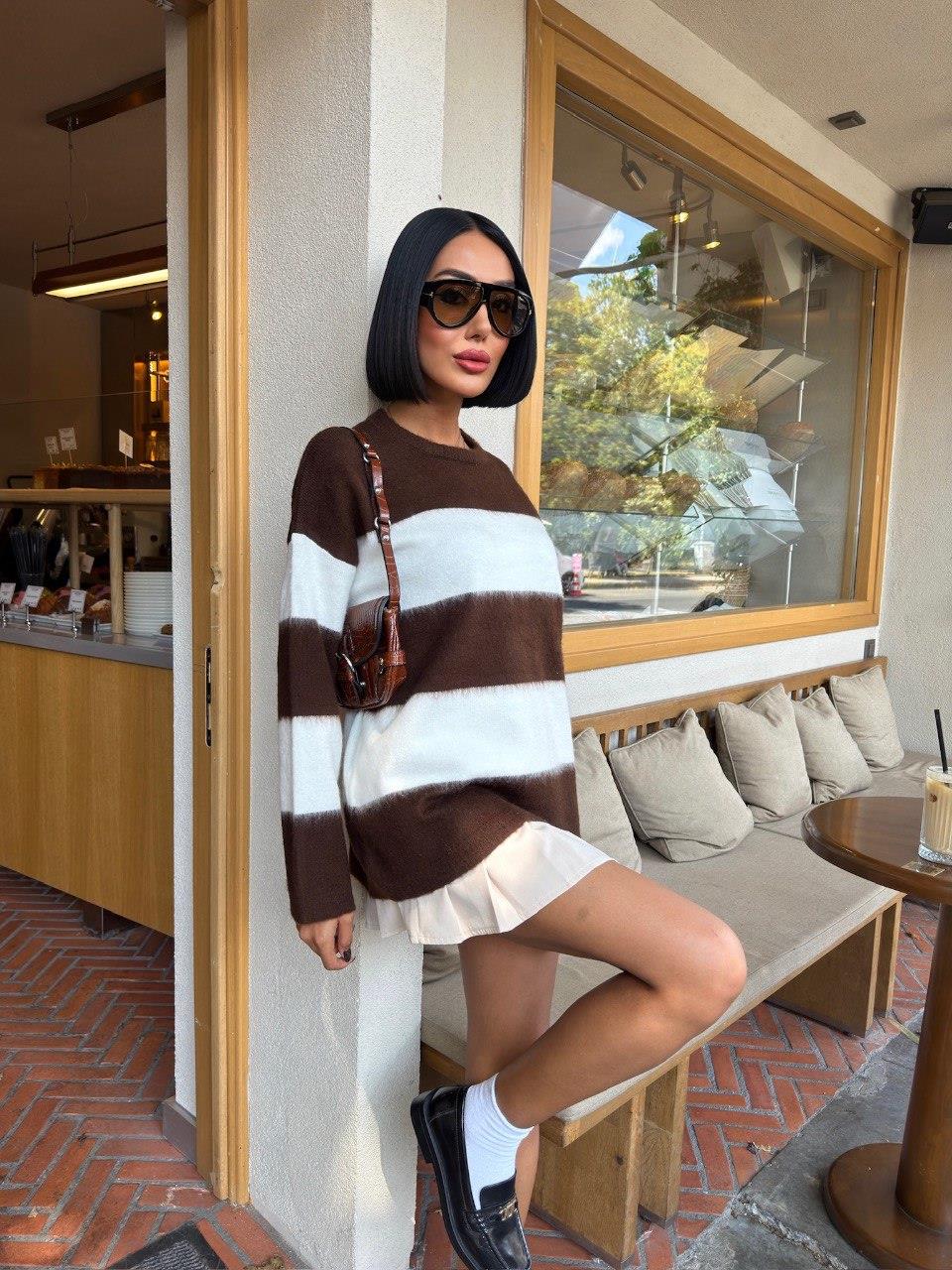 Zr Model Yumoş Renkli Premium Triko - Kahve (S4K1373 - Kahve)
