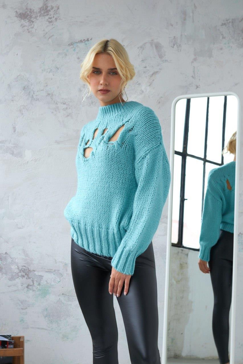 Zr Model Yumuşacık Örgü Tasarım Kazak - Mint (S3K1200 - Mint)